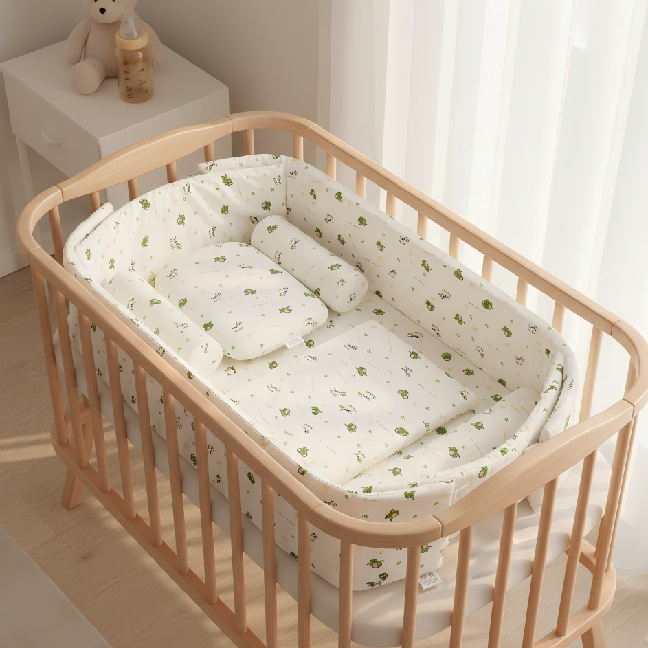 This thoughtfully designed 5-piece set includes everything parents need for safe, breathable, and ergonomic sleep. Every piece is tested to international safety standards — because your child deserves the best from day one.